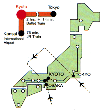 of Kyoto in 75 minutes by JR train. The nearest domestic airport is Itami